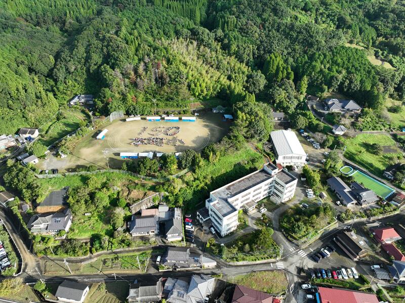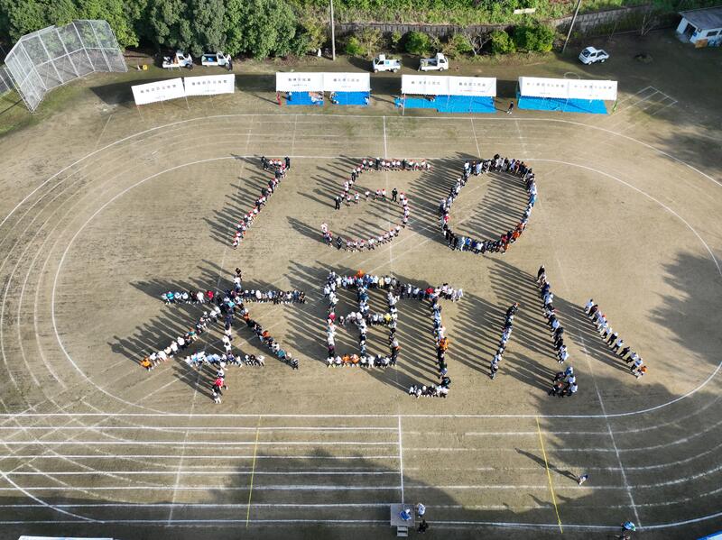 10月5日(日)に町民運動会が開催されました。この日は、運動会前に、創立150周年を祝う人文字づくりを計画しておりました。朝早くから、地域の皆様に集合いただき、小学校児童とPTA、地域の皆様で作り上げた人文字は大成功でした。ご協力いただきありがとうございました。