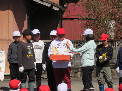 全校児童で、稲刈りの体験をしました。5年生が中心となって苗作りから頑張ってきていますが、今年も順調に大きくなり素晴らしい出来の稲になりました。1年生は、したことがない児童もいて、鎌の使い方が最初は危なかったしかったのですが、慣れてくるどんどん稲を刈っていっていました。5・6年生は、稲を束ねる作業を頑張りました。今年は、架ける棒も例年より多くしなければならないほどの豊作。おいしいお米になっているようです。早く試食したいです。
