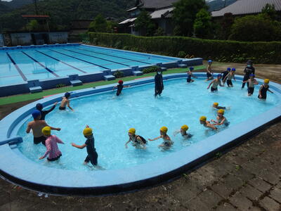 自由時間に、楽しそうに水の中で活動している3・4年生