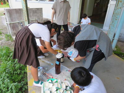 6月27日に2名の地域ボランティアの先生をお迎えして、廃油石鹸作りを行いました。本校の健康委員会の児童がお二人の先生の指導を受けながら、上手に廃油石鹸を作ることができました。この石鹸は、とても質が高く、本町のふるさと祭りで販売すると、すぐに売り切れるそうです。健康委員会の児童は、心を込めて廃油石鹸を作り、本当によい学びができました。2名の地域ボランティアの先生方、本当にありがとうございました。