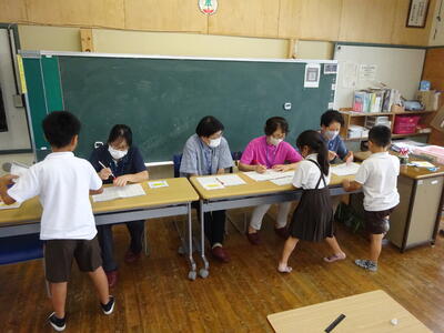 7月14日(金)、家庭や地域の学習支援ボランティアの皆さんに、1・2年生のチャレンジタイムで、音読を聞いていただいたり丸付けをしていただいたりしました。間違いがあっても、優しく励ましの言葉をかけてくださるので、児童は安心して学習に集中していました。一人一人の伸びを感じる学びの時間となりました。