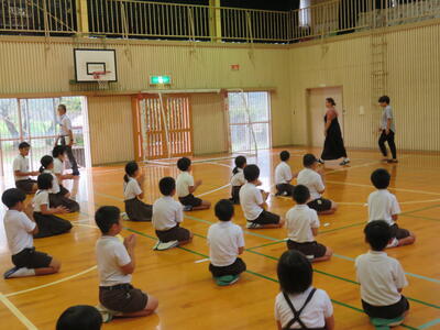 子ども達はお二人の先生の話を笑顔で嬉しそうに聞いていました。また、子ども達は、素敵な歌声を先生方にプレゼントしました。
