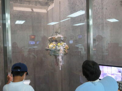 ゴミクレーンの動きを見ている子ども達。大量のゴミに驚いた様子です。