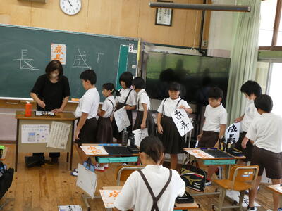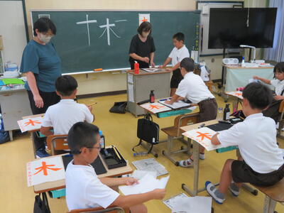 9月12日と14日に、地域の有名な習字の先生を迎えて、全学年を対象に、硬筆及び毛筆の指導をしていただきました。丁寧で分かりやすいご指導に、子供たちの伸びも大きかったようです。だんだんとお手本の文字に近付いていることが分かりました。また、10月初旬に指導をしていただく予定です。