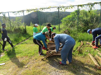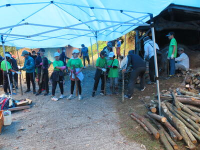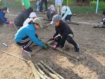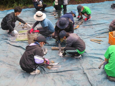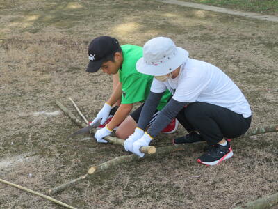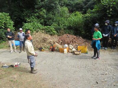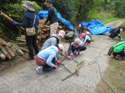 9月22日(日)コミュニティスクールの活動として、炭焼きに向けての木切り活動がありました。子ども達は、お家の人や友達と声をかけ合い、怪我に気を付けながら、次々と炭焼き用の木を切ることができました。