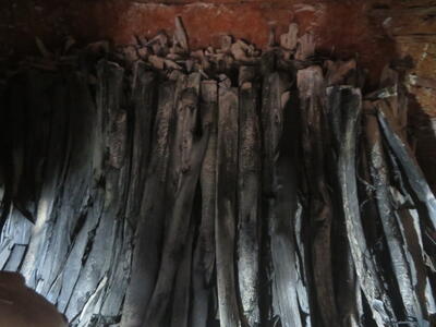 < 窯の奥にある炭は、日光で美しく輝きました >