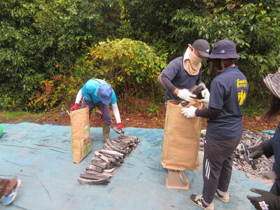 地域の指導員さんや保護者の方々が窯を開くと、まっすぐで、黒くてツヤのある美しい炭がたくさんできていました。炭焼きに係わる全ての皆さんの思いが「質の高い炭」に表れていました。