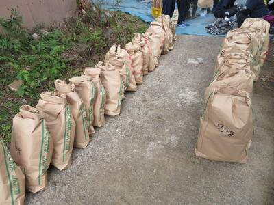 今後は、1日か2日ぐらい日光に当てて乾燥させる作業があります。それが終わったら精米機にかけるだけです。本町小の子どもたち及び職員、保護者の皆さん、地域の指導者の方々の心のこもった「世界一おいしいお米」になっていると思います。お米を炊いて食する日が楽しみです。