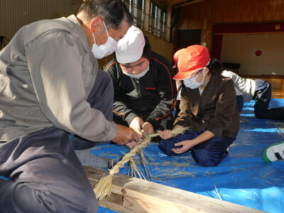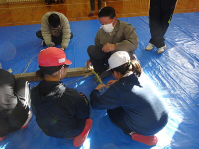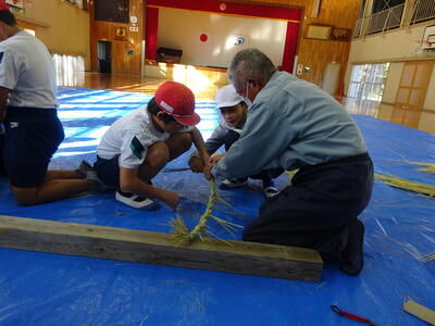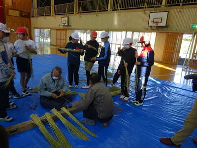 12月7日(木)にしめ縄作り名人のお二人の指導者をお迎えし、5年生が、「しめ縄作り」を体験しました。