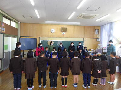 大変お世話になった地域の支援員の方へ、全校児童を代表して5・6年生が感謝の気持ちをこめてお礼の言葉を伝えました。本当にありがとうございました。