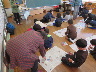 1月17日(水)に、「凧作り名人」の四人の指導者をお迎えし、1年生と支援学校の子ども達が「凧作り、凧あげ」を通して交流しました。