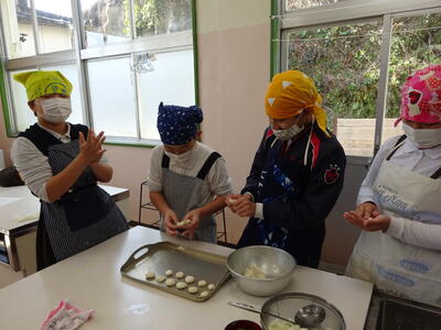 3月15日(金)に6年生家庭科のCS活動として、お二人の講師の先生をお招きし、郷土料理「だご汁」を作りました。