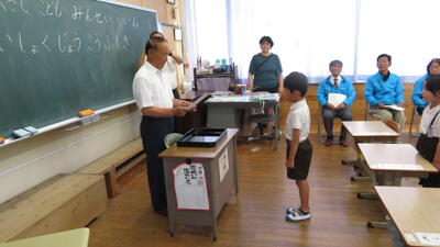 8月29日(金)は、2学期の始業式でした。今日は、みんな揃うかなあと心配でしたが、67人全員が出席。にこにこ笑顔で元気な顔を見ることができました。これまでなら暑い体育館も、空調が設置されましたので、みんな集まって快適に始業式をすることができました。まだまだ暑い日が続くようですが、暑さに負けず頑張ってほしいなと思います。