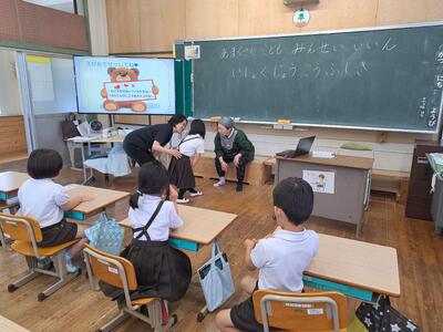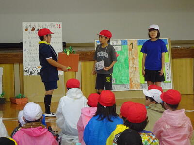 1年生が、本町小子ども民生委員になかまいりをしました。委嘱状を受け取り、天草市子ども民生委員の信条を朗読しました。その後に、養成講座を受講し、高齢の方の心と体の変化について学び、困っている高齢の方に、どう声かけをしたらいいか考えて実際に声かけをしてみる体験もしました。