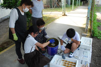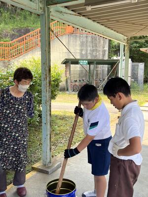 毎年恒例の廃油石けん作りを健康委員会で行いました。松下さんと高江さんを講師にお迎えし、作るコツを教えていただき、汗をかきながら頑張りました。玉じゃくしで牛乳パックに等分しました。これから少しずつ固まっていきます。できあがりが楽しみです。秋のふるさとまつりで販売します。