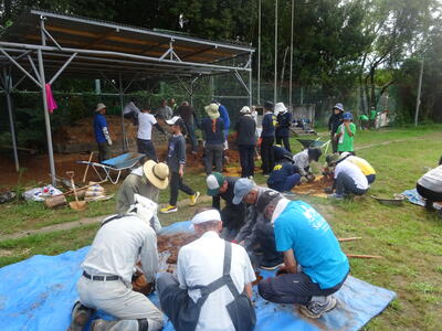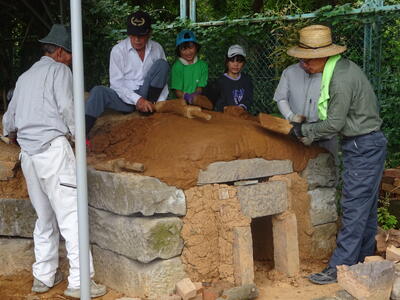 創立150周年を記念して、炭窯づくりを地域の皆様、保護者の皆様、子どもたちの協力のもと、最後のドームの部分が9月27日に完成しました。2日間かかるかと予想されていましたが、皆様のご協力のお陰で1日で作業を終えることができました。とても立派な素敵な炭窯の完成です。これから、土を乾燥させる期間に入ります。皆様のご協力、ご理解ありがとうございました。10月25日の火入れが楽しみです。