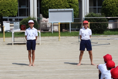 その後、最初の応援練習が行われ、応援団を中心に、大きな声が運動場いっぱいに広がりました。