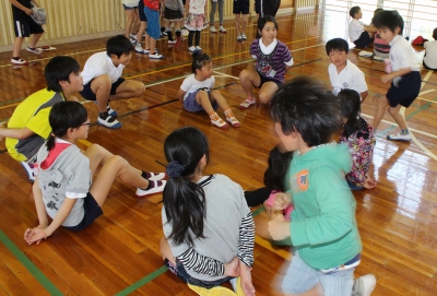 次に、児童会運営委員の司会のもと、楽しいゲームを行い、異学年間の交流を深めました。