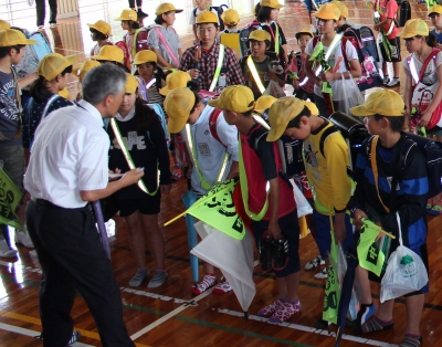 最後に生徒指導の田中先生から4・5月の生活目標について「ハンチボウナタ(ハンカチ・ちり紙・帽子・名札・タスキ)は自分の命を守ることにつながります。毎日忘れないようにしましょう。」と指導がありました。