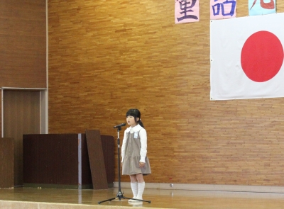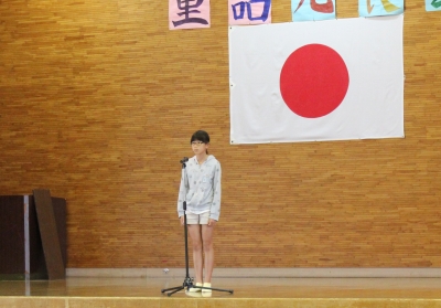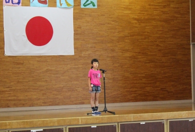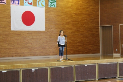 低学年は5分以内、高学年は7分以内の文章を暗記することは容易なことではないですが、みんな、まちがえることもなく堂々とした口調で発表することができました。