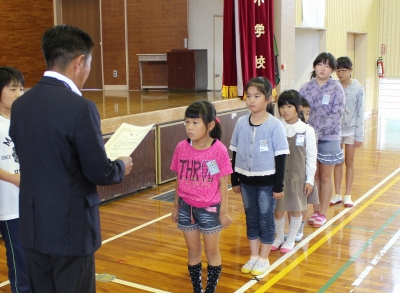 転出児童の紹介もあり、転出する児童は「次の学校でも頑張ります。」とお別れの言葉を述べ、お互いに別れを惜しんでいました。