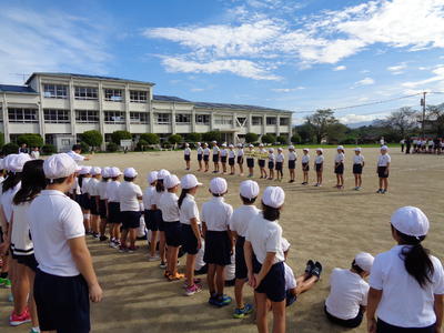 今日は「人吉球磨地方に大雨警報が発令され、児童を早急に下校させる」という想定で水防避難訓練を行いました。5時間目終了後、子どもたちは担任の指示に従い、速やかに体育館に集合しました。担当からの話の後、分館毎に一斉下校をしました。これから雨の多くなる時期になります。今回の訓練を生かして、安全に下校してほしいと思います。