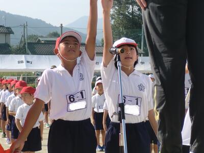 開会の言葉では、はっきりとした大きな声で堂々と発表することができました。また、誓いの言葉は、各団長の力強い宣誓から始まり、運動会の良いスタートがきることができました。