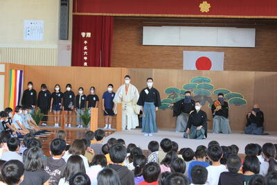 6年生の国語の単元には、「伝統文化を楽しもう」として、狂言の学習が予定されています。10月25日(火)の芸術鑑賞会とともに、学ぶ機会がたくさんありそうです。「実りの秋」に向け、今日の学習をさらに生かしていってほしいと思います。