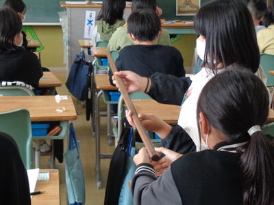 さらに、学校運営協議会委員でもある牟田弘美様に、梨の木の冬の様子や枝についている芽の中身についてお話をいただきました。梨の木は、冬の間、しっかり眠りにつき、枝に木の芽をつけます。「みんなが元気に過ごすための毎日(しっかり寝て、しっかり栄養をとって、元気に過ごす毎日)と一緒だね!」と言われた言葉に、1年生の子どもたちも、しっかりうなずいていました。