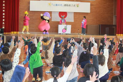 本校では、12月5日(月)から14日(水)までを「人権旬間」として位置づけ、人権学習や人権集会を実施しています。本日12日(月)は、2時間目に低学年、3時間目に中学年の人権集会を実施しました。