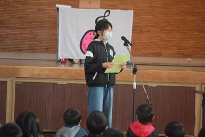 人権集会では、各学年の人権学習で学んだことや考えたことの発表や校長先生からの絵本の読み聞かせ(低学年は「しんせつなともだち」、中学年は「わたしのいもうと」)等を行いました。