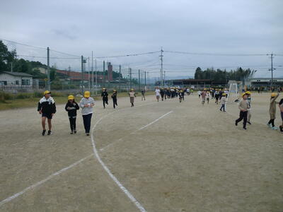17日(木)から、持久走大会に向けた体力アップの取組が始まりました。12月6日(火)までの昼休みの7分間を使って1,2,3年生が内周、4,5,6年生が外周を走ります。運動場では、半袖半ズボンで走る子どももおり、みんな元気いっぱいでした。