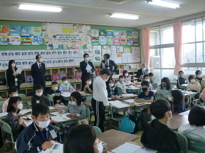 各学級の代表への修了証の授与を行った後、校長先生から「先日行われた卒業式の5年生はとても素晴らしかった。次年度の最上級生として学校を引っ張っていって欲しい。」と話がありました。