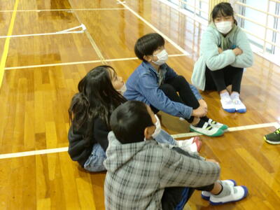 5日(月)は、あいにくの雨模様となりましたが、7日(水)の持久走大会に向け、4~6年生の児童による係打合せを行いました。