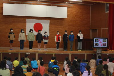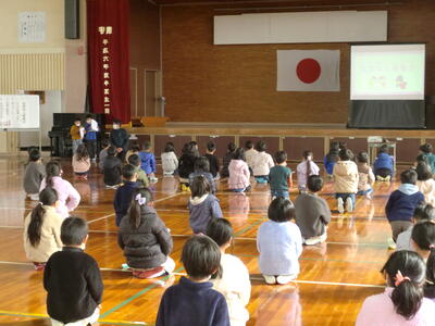 また、寒い日でも運動場で遊んで体を動かそうという話もありました。その後の感想発表では「運動に親しみたいです。」という感想等がありました。体調に気を付けて元気に外で遊んで欲しいです。