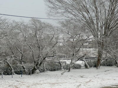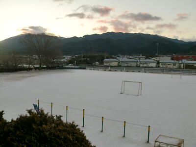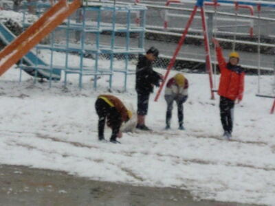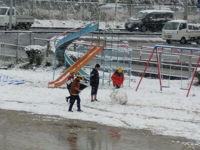 23日(金)の朝は、すっかり雪景色となりました。登校してきた児童は、雪景色がうれしくてたまらないようで、朝から運動場に出て雪だるまづくりをしていました。