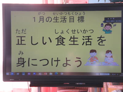 今月は、「進んで健康な体をつくろう」が生活目標です。体調管理に気を付けて、生活を送ってほしいです。