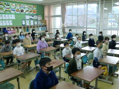 本日の終業式は、寒さ対策のため、リモートで実施しています。この様子は、のちほど紹介します。