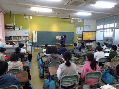 27日(月)5校時に、学校薬剤師である永尾様を講師に、5年生を対象とした「薬の適正教室」を開催しました。