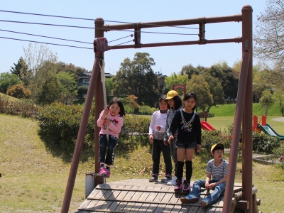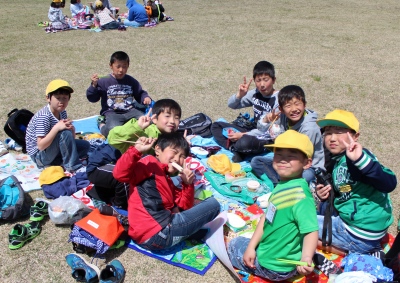 昼食・休憩時間では、それぞれ仲のよい友だちと輪になり、おいしいお弁当を食べたり、遊具で遊んだりしました。