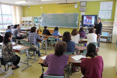続いて各学年の教室で学年懇談会があり、「親の学びプログラム」を活用した研修や担任の先生からの学年経営の説明などが行われました。