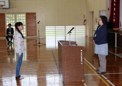 続いて、児童の代表が「私たちも、先生とたくさん話をして、早く仲良くなりたいです。」と歓迎の言葉を贈りました。