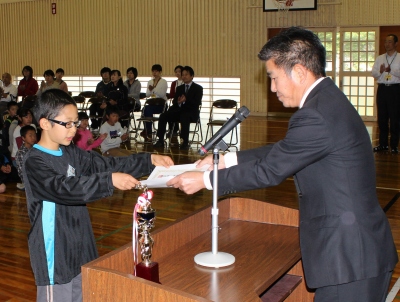 5月1日(木) 今月の全校集会では、はじめに大招魂祭奉納剣道大会で準優勝をした児童の表彰が行われました。