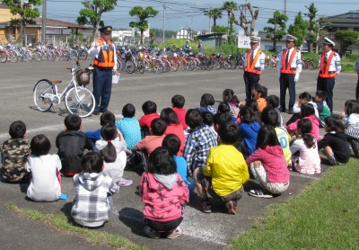 1年生と4年生には、交通安全協会の指導員の方や一武駐在所の尾方さんに来校いただき、交通安全についての講話や実技指導を行っていただきました。