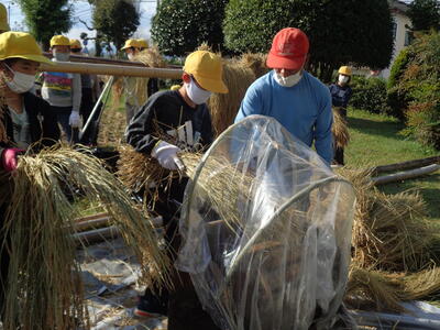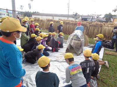 今回も、岩見さんに丁寧に教えていただきながら、協力して脱穀することができました。初めて脱穀を経験する子どもたちが多く、とても貴重な体験になりました。