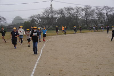 霧が深く、気温も低い中でしたが、子どもたちは自分の目標に向かって一生懸命走り続けていました。