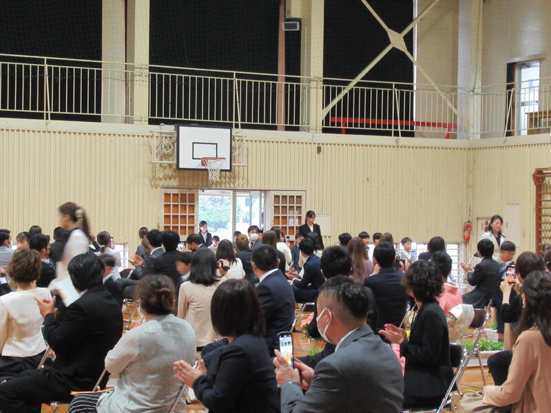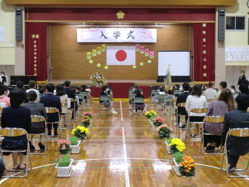 今日は入学式があり、37名の新1年生が入学しました。子どもたちは、入場前までは少し緊張した表情でしたが、式が始まると堂々と入場し、校長先生のお話を静かに聞くことができました。また、「入学おめでとうございます」に対して、「ありがとうございます」と大きな声で返すことができたり、担任から呼名があると元気な声で返事をすることができました。
