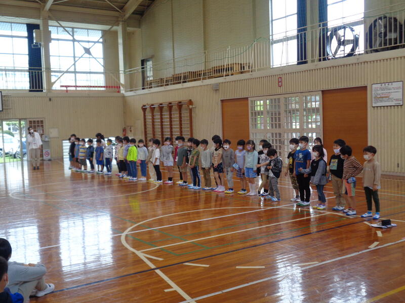 1年生は、一人一人の名前と好きな食べ物や将来の夢を自己紹介しました。警察官やアイドルなど様々な夢や好きなものを元気よく発表することができました。