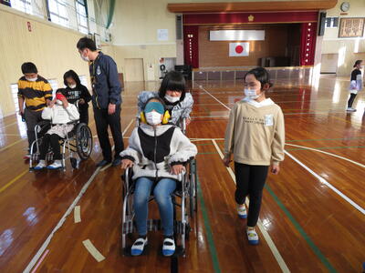 6時間目は、体育館で車椅子や歩行器、杖の体験など実践的な活動を行いました。また、終了後には、認知症サポーターとしてのカードをいただきました。
