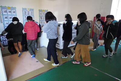 今日の3時間目に、家庭科室で火災が起きた場合を想定した「避難訓練」がありました。